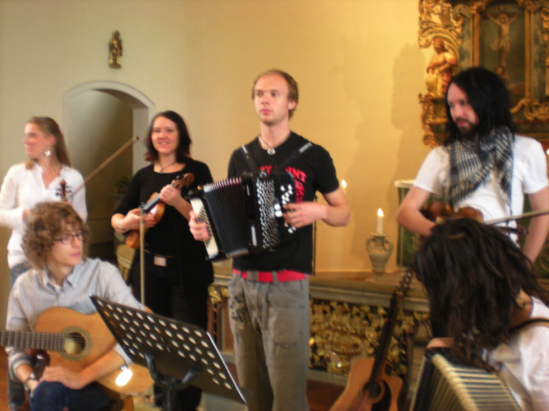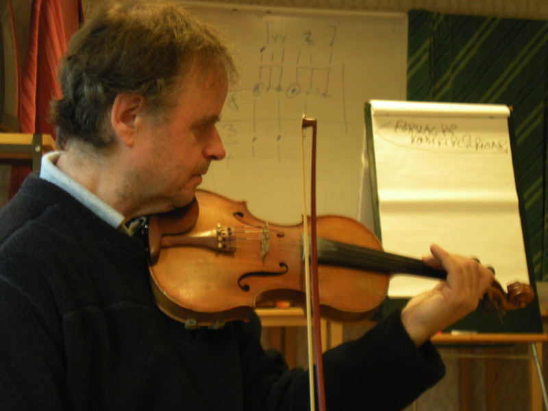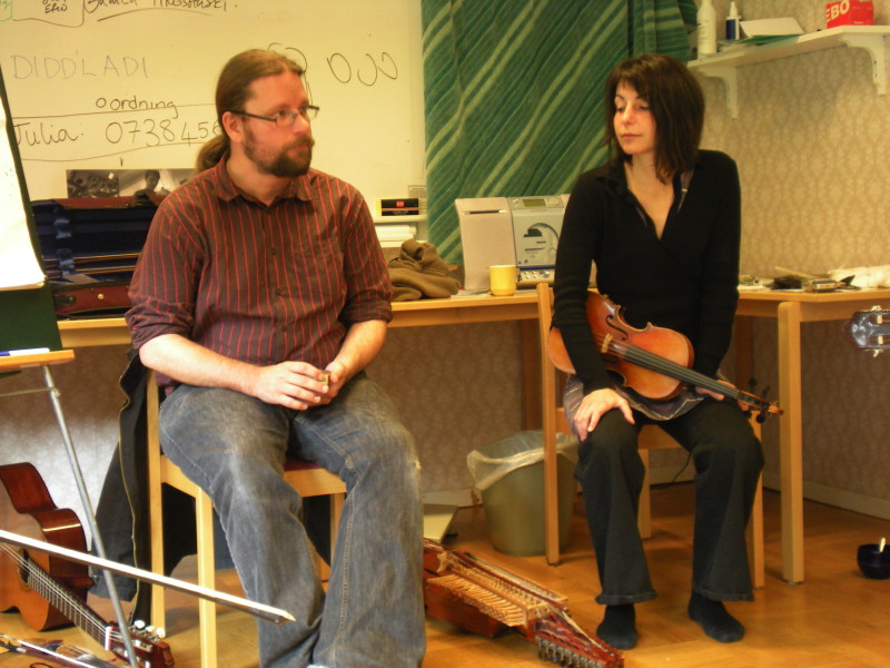 une fois par mois environ, le WE, je vais à Tobo, pour faire du nyckel... Les stages sont assez théoriques... répertoire, histoire et évolution de l'instrument, différents types de danses, de polskas... On écoute beaucoup, on enregistre beaucoup... et puis le soir on joue un peu... Au début c'est un peu frustrant, mais ça fait plein d'outils pour bosser longtemps après. Et ça, c'est bien! |
