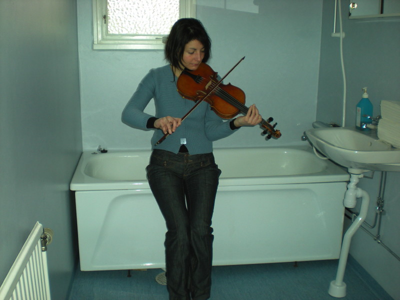 Je devais aller à Tobo, mais l'école n'a pas ouvert les cours annuels. Elle ne fait plus que des stages cette année, où je vais régulièrement. Du coup, je suis partie quand même, dans une "folkhögskola", une sorte d'école libre où les gens viennent davantage pour un développement personnel que pour une formation à proprement parler. Je suis à la folkhögskola de Birka, à quelques km d'Östersund, dans le Jämtland. Il y a un gros département de musique jazz dans cette école, et une petite classe de musique folk. Du coup, c'est vrai que je ne me retrouve pas avec un enseignement spécifique en nyckelharpa. Les profs nous donnent plutôt des bases pour bien ressentir la musique suédoise, pas mal de répertoire, et puis ensuite, c'est à nous de travailler dans les directions que l'on aura choisies. Pour ma part, je crois que je fais autant de violon que de nyckel, car les répertoires proposées sont vraiment intéressants au violon! Et puis j'essaye de bosser le son, le style, les ornements, la pulsation, enfin plein de choses... et ce n'est en fait qu'une introduction... Comme je te le disais, il nous faut bien sûr des années! (Mais c'est bon, y'en reste devant...). |