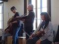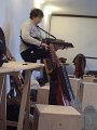 Un stage entre deux, ni tout à fait le même, ni tout à fait un autre, pour meubler le temps entre Novembre et Mars, le temps d'hiver. Pour se réchauffer un peu. Et ça n'a pas manqué ! Une bonne trentaine de participants pour ce stage qui avait lieu à Mirecourt, dans l'atelier ddu luthier Philippe Moneret . Accueil, organisation, bonne chère, bons vins, bonne musique, encore de nouveaux morceaux, toujours le talent, ambiance chaleureuse, bref, que du bon, du très bon. Et, cerise sur le gâteau, un petit scoop le dimanche à 16h au Musée de la Lutherie: le duo Eléonore Billy-Laurent Vercambre. Seul petit bémol, pour certains, s'il faisait chaud à